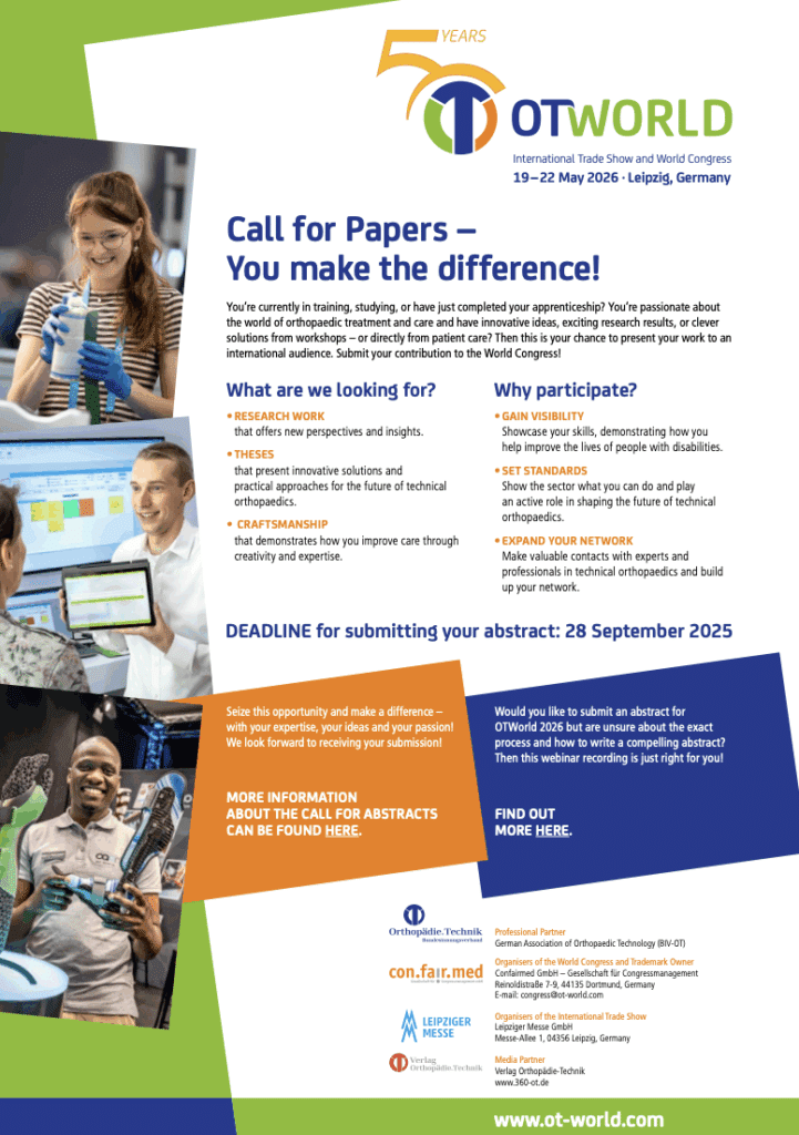You‘re currently in training, studying, or have just completed your apprenticeship? You‘re passionate about the world of orthopaedic treatment and care and have innovative ideas, exciting research results, or clever…
