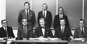 Sitting, left to right: D.S. McKenzie, UK; Anthony Staros, USA; Knud Jansen, Denmark; George Murdoch, UK; A. Bennett Wilson Jr., USA.