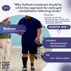 The ISPO Continuing Professional Development committee is pleased to invite you to a webinar titled “Why Orthotic treatment should be a first line approach for early gait rehabilitation following stroke” on Saturday November 19th, 2022 from 3:00 to 6:00 pm CET including Q&A session. Program shall be announced soon.